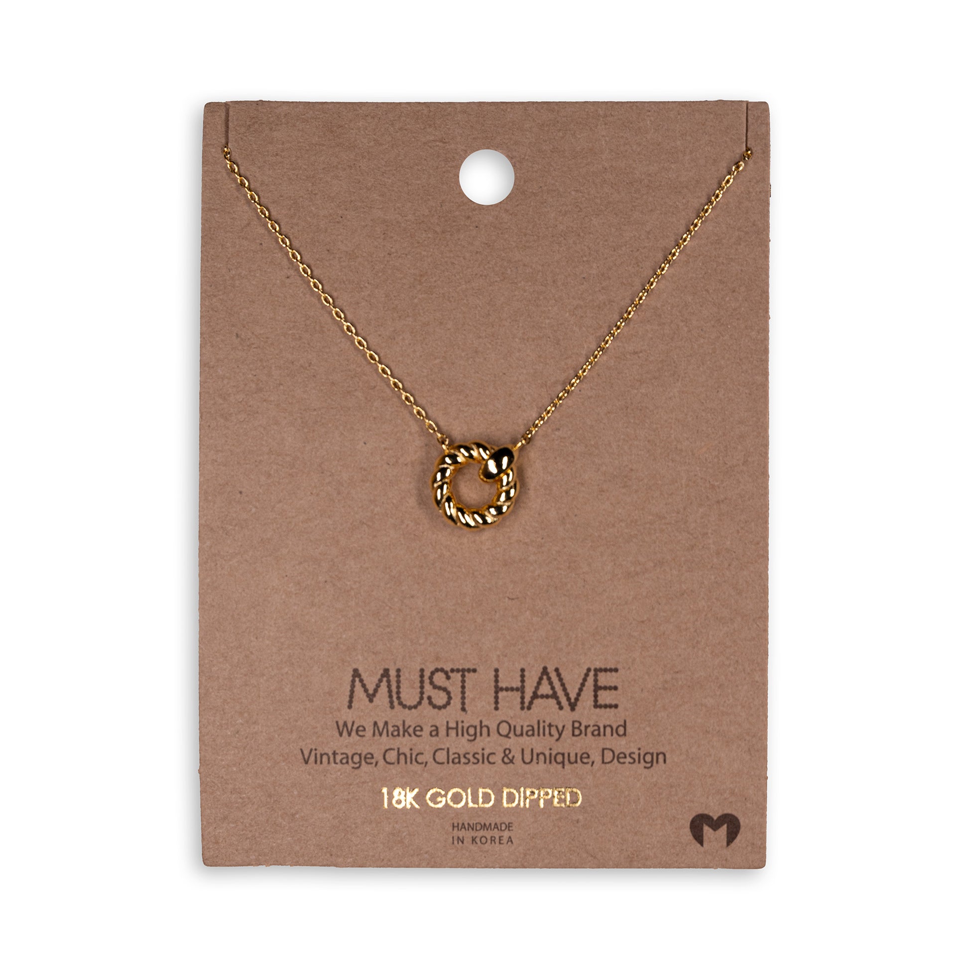 Gold Dipped Twisted Hoop Pendant Necklace