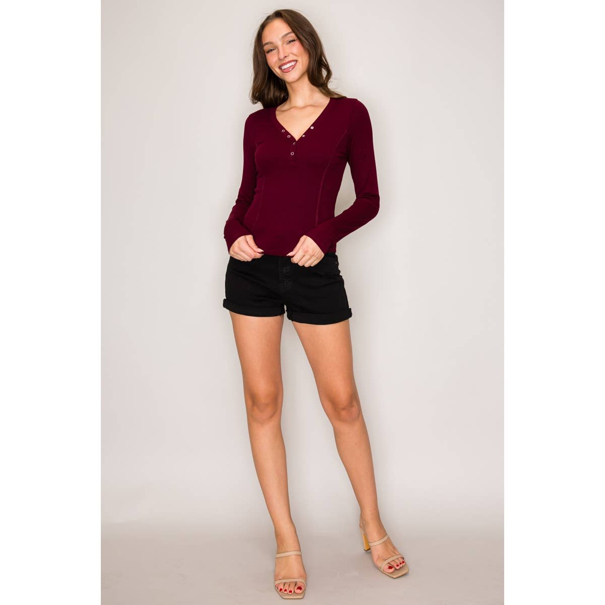 Long Sleeve Henley Top with Snaps
