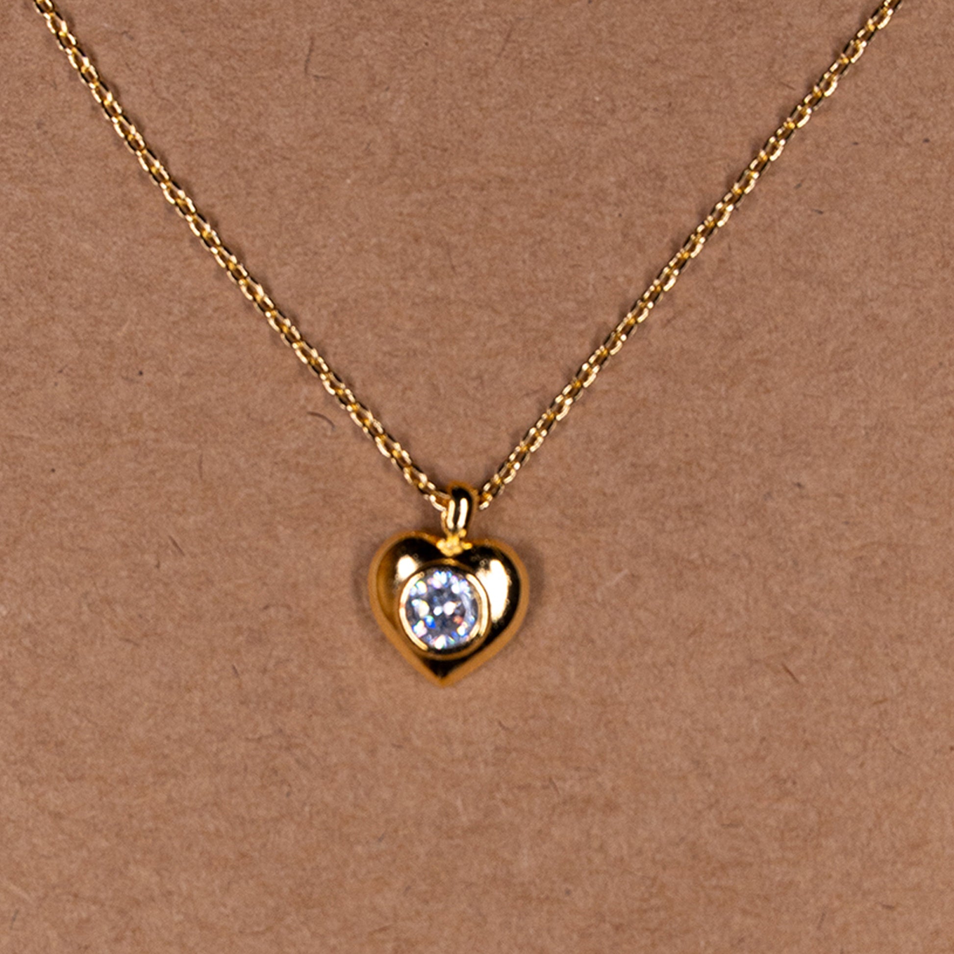 - This necklace displays a vibrant mini heart rhinestone pendant style.